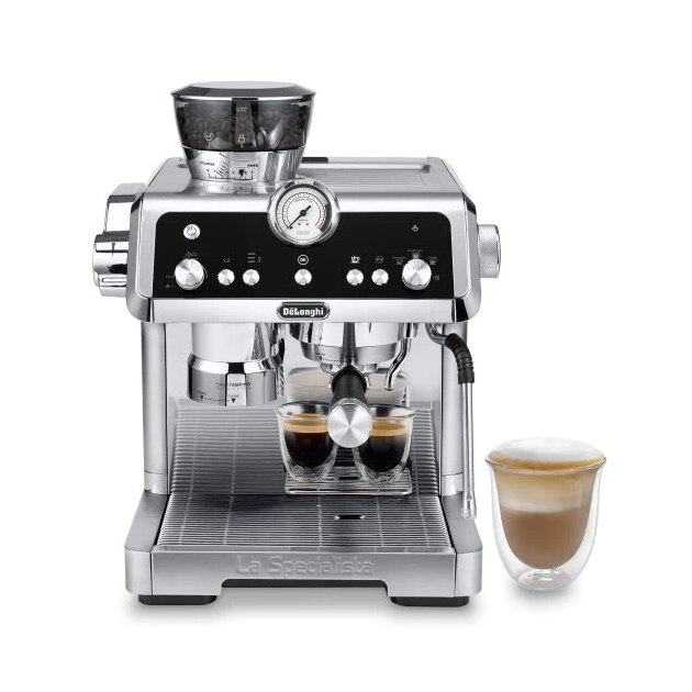 La machine expresso avec broyeur DeLonghi La Specialista 2.0 Prestigio EC 9355.M est une machine complète pour préparer toutes vos boissons préférées très facilement. Elle contient les dernières technologies de DeLonghi comme un broyeur intégré avec capteurs, un tamper semi-automatique, une buse vapeur semi-professionnelle pour réussir vos boissons lactées en toute simplicité et même une buse séparée pour l'eau chaude !